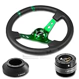 NRG-SRK-150H+016R-GN+200BK, NRG Innovations 13.78" 350mm 3" Deep Dish Style Black Leather Green Center Marking Green Spokes Racing Steering Wheel Combo with 6 Hole Short Hub Adapter with Gen 2.0 Black Quick Release Kit SRK-150H