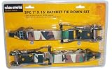 | ✚✚✚ 2 Pack Heavy Duty Camo Ratchet Tie Downs Case Pack 12 2 Pack Heavy Duty Camo Ratchet Tie Downs Case Rolson America 2 Piece 1'''' x 15' camouflage ratchet tie down set. Each tie down features 1500# capacity, quick release heavy duty mechanism, and vinyl coated hooks.'' Case Pack 12 .Please note: If there is a color/size/type option, the option closest to the image will be shipped (Or you may receive a random color/size/type)..