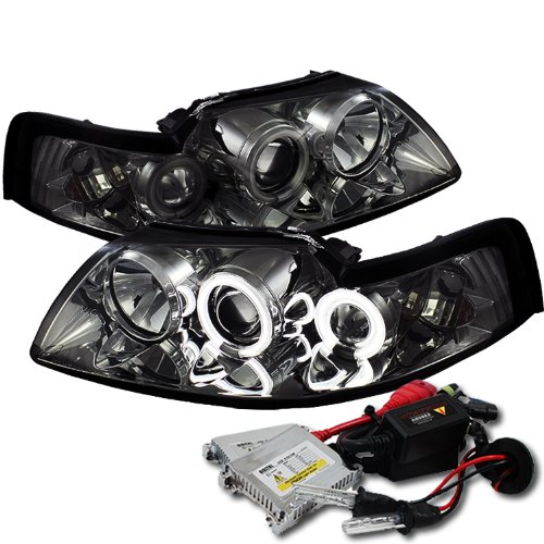 High Performance Xenon HID Ford Mustang CCFL Projector Headlights with Premium Ballast - Smoke with 8000K Crystal Blue HID